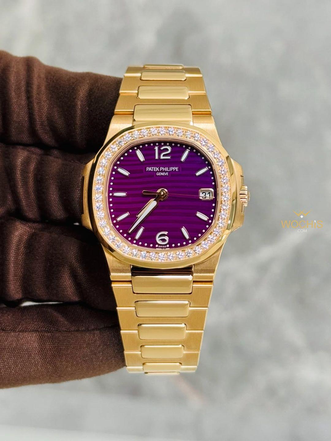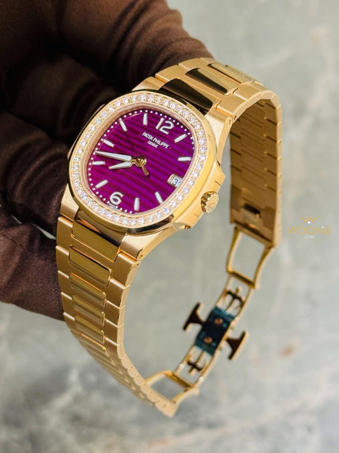 Patek Philippe Nautilus 32mm Diamond Bezel Rose Gold Purple (7010)