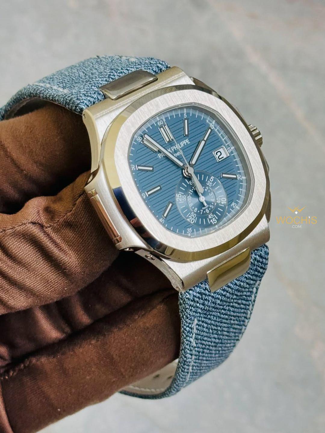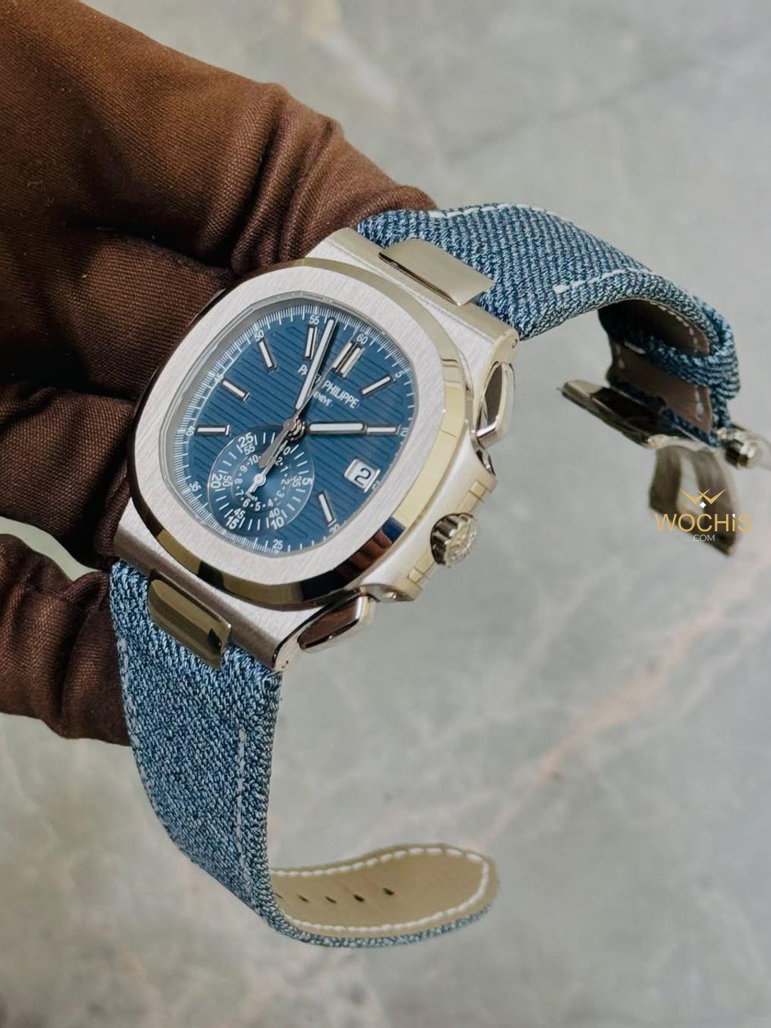 Patek Philippe Nautilus Flyback Chronograph White Gold Blue-Gray (5980)