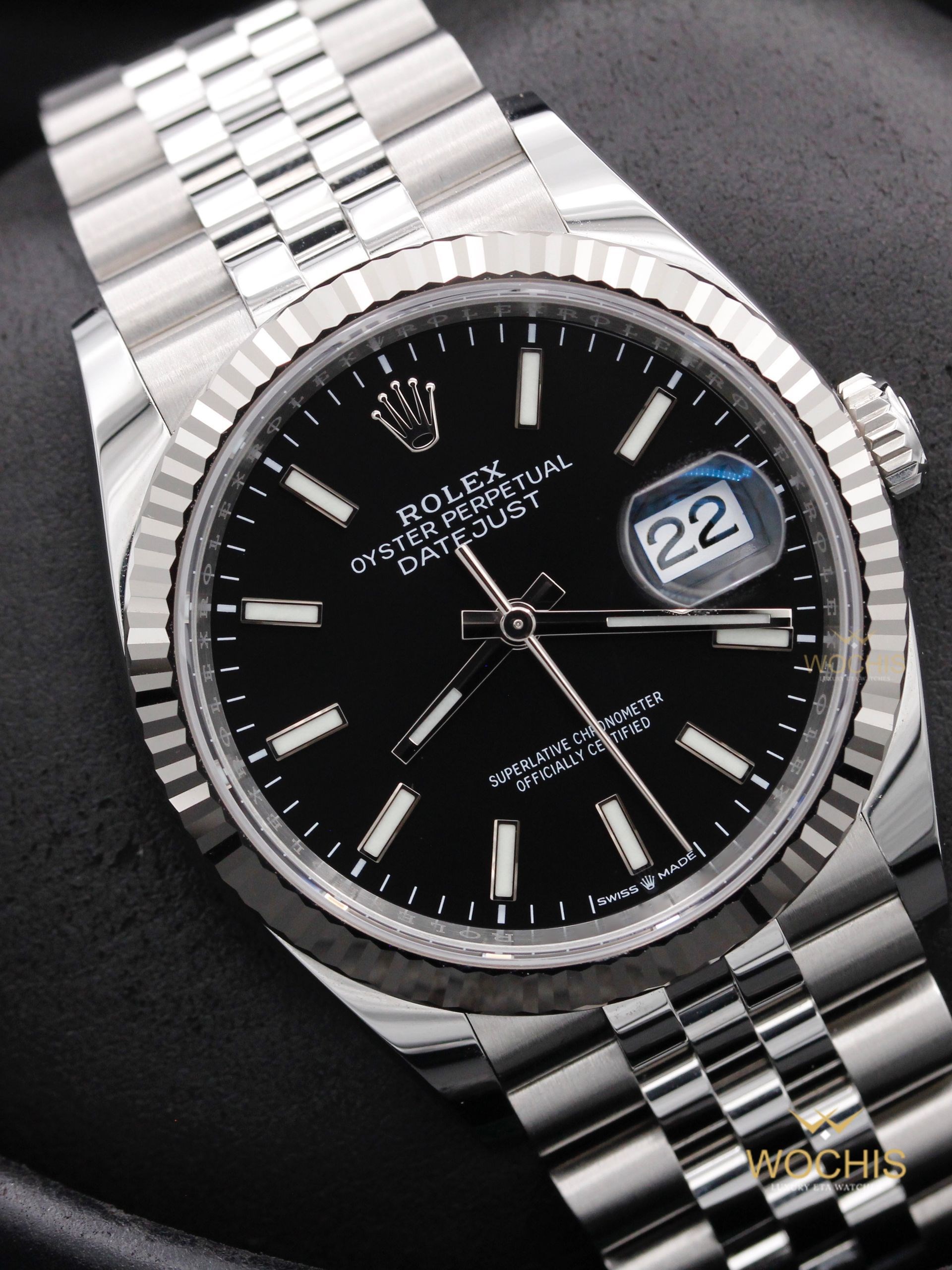 Rolex Datejust 36 126234-8821 (Stainless Steel - White Gold Fluted Bezel - 36 - Black Index) (8821)
