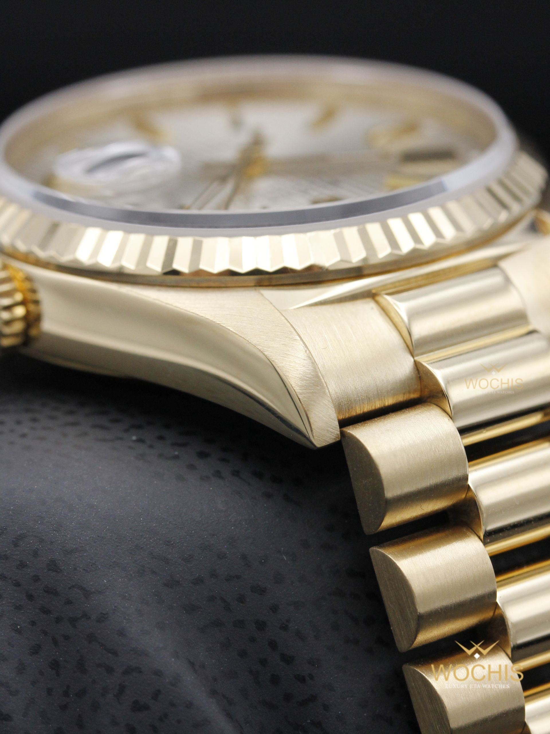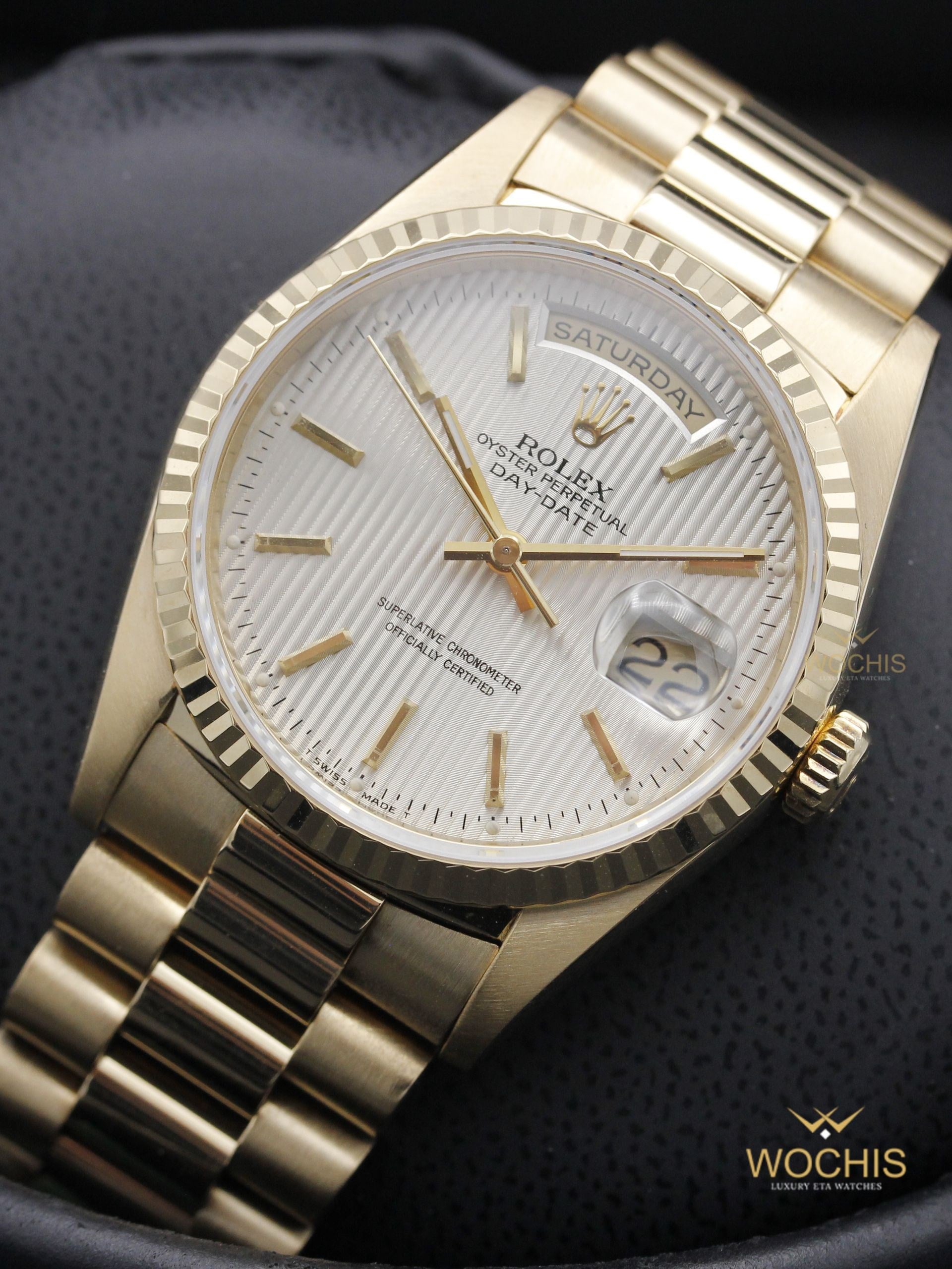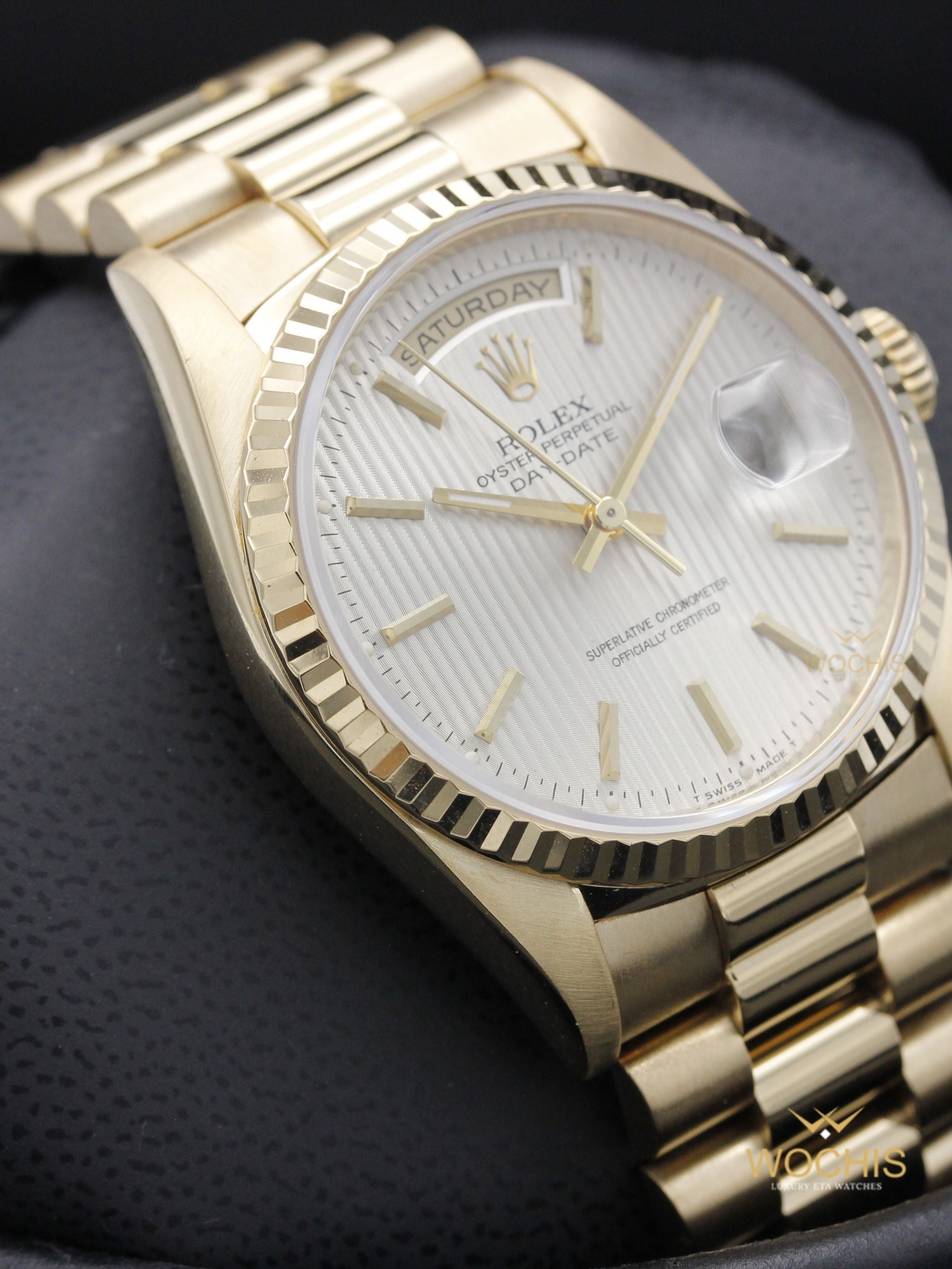 Rolex Day Date 18238-8501 (Yellow Gold - 36 - Silver Tapestry Stick Index) (8501)