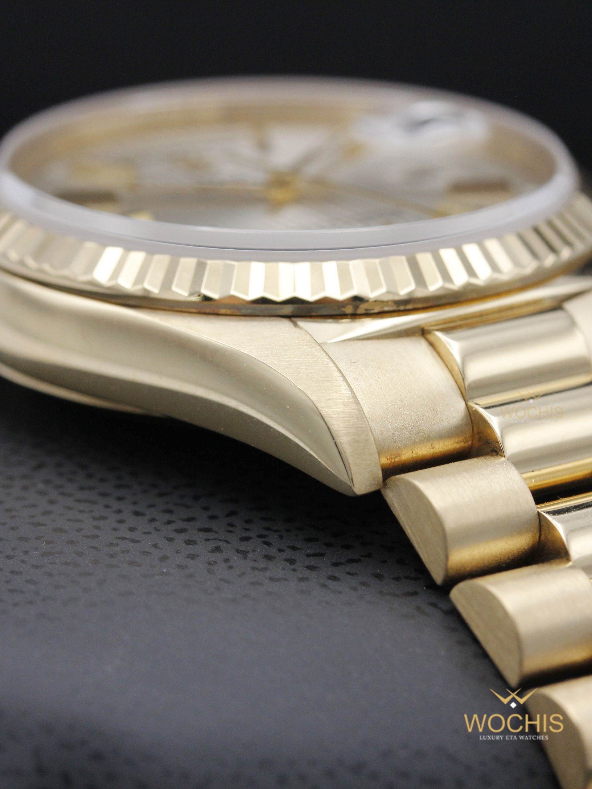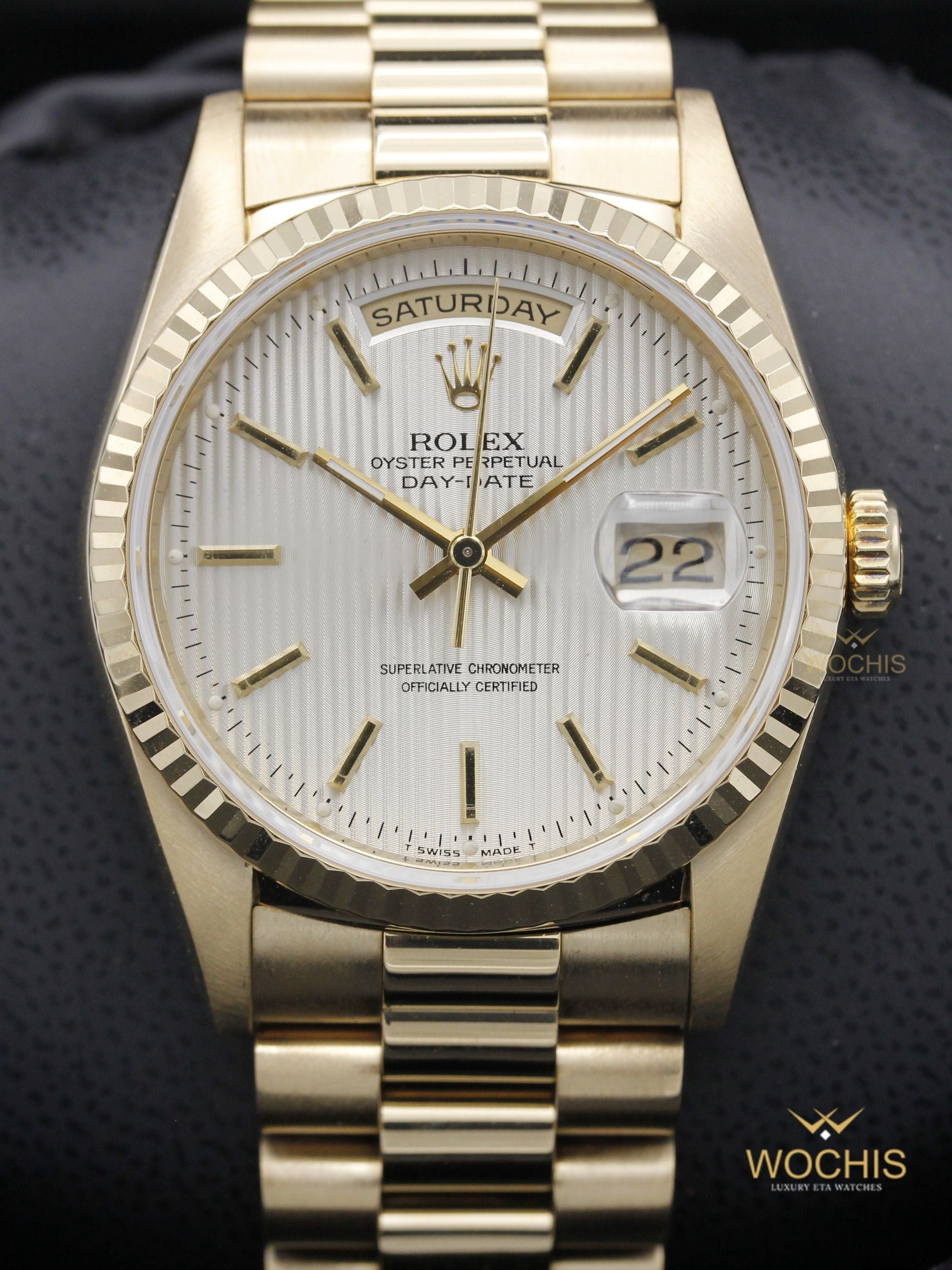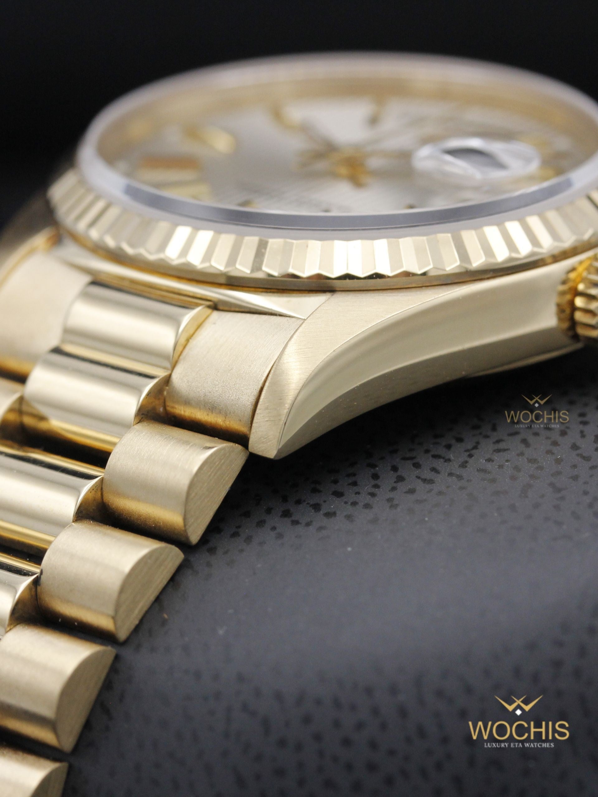 Rolex Day Date 18238-8501 (Yellow Gold - 36 - Silver Tapestry Stick Index) (8501)
