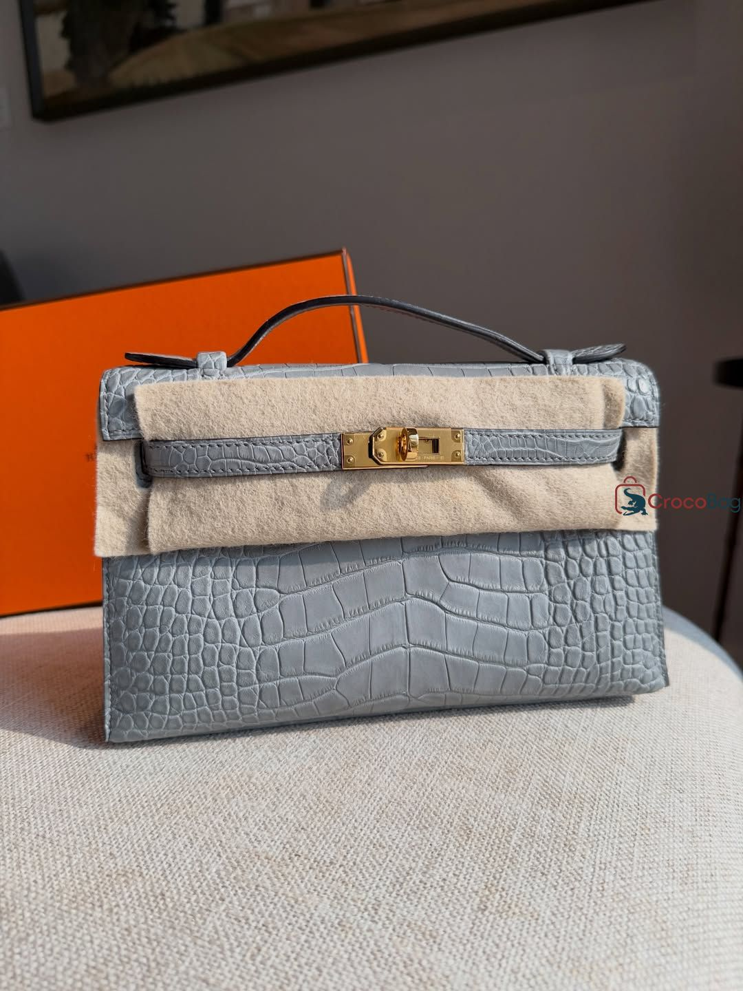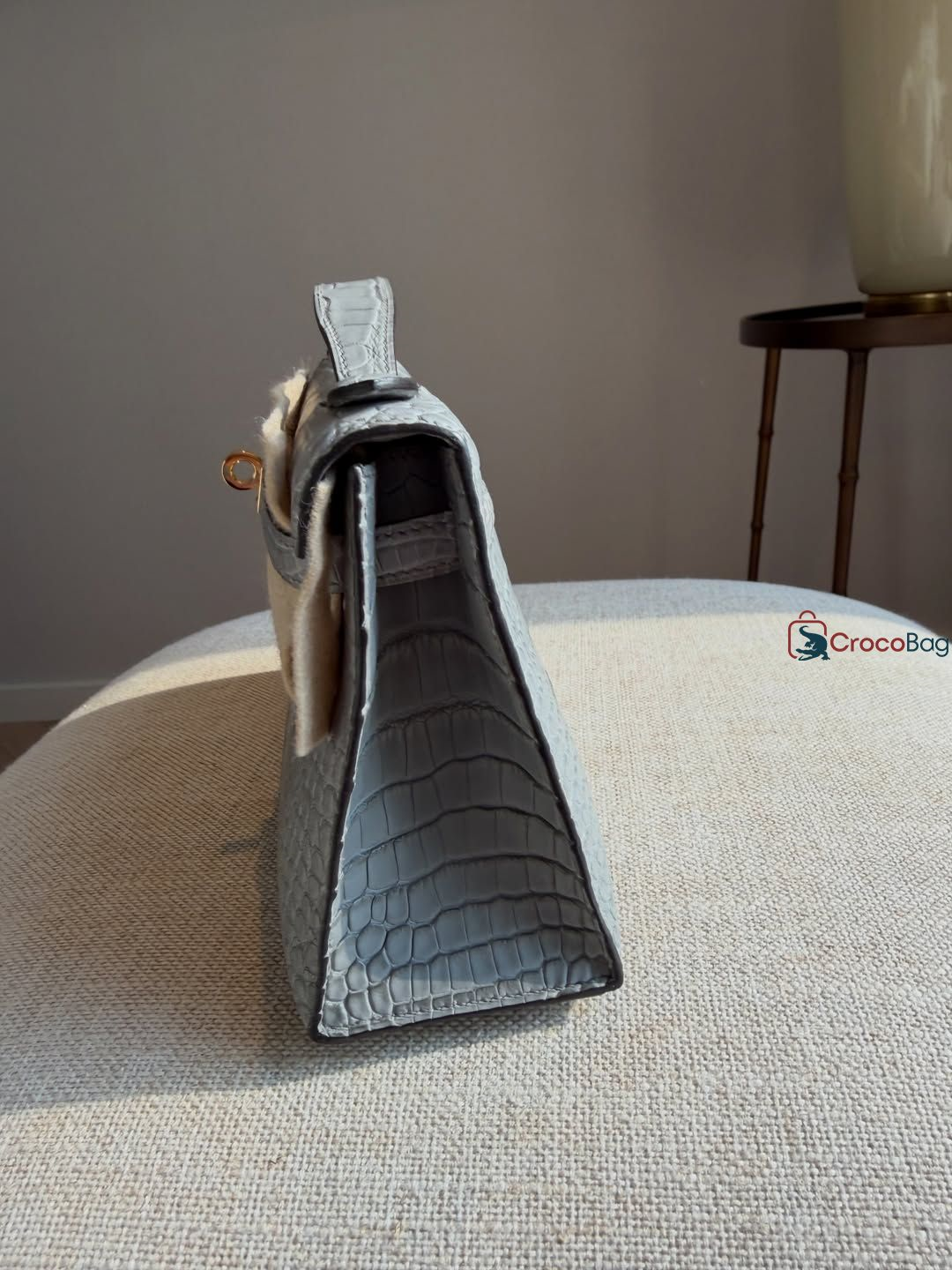 HERMES GRIS CIMENT CROCODILE ALLIGATOR MINI KELLY II 20 POCHETTE (4t4623)